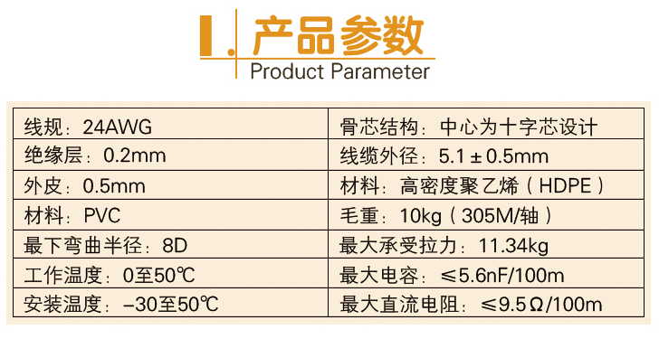 ●最大直流电阻:≤9.5Ω/100m
