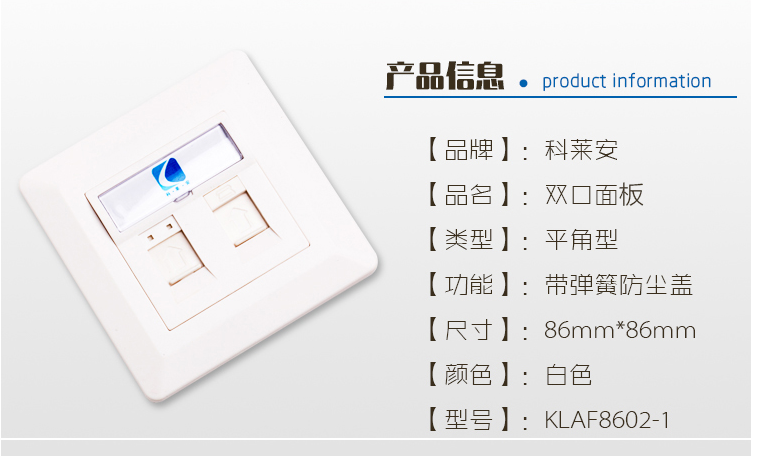 KLAF8602-1 双口面板,平角型,带弹簧防尘盖