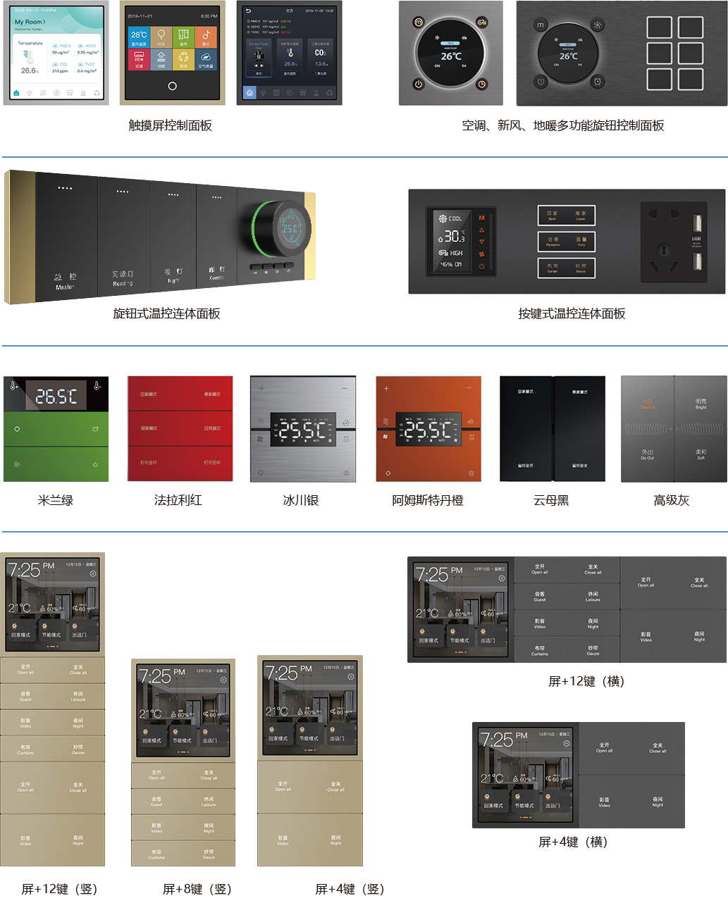 提供各种款式及不同材质的KNX控制面板选择: